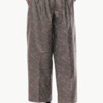 Designed as a long-line wardrobe staple. these trousers are cut a smooth faux leather with a subtle mottled finish that creates a soft. lived-in effect. The silhouette is structured but relaxed. defined by a clean high waist and a single front box pleat that shapes the leg. A horizontal seam below the knee references the panel construction of traditional leather garments. Finished with belt loops. concealed side pockets. and double-welt back pockets. Wear them with knits. soft shirting. or the matching jacket for a tonal set.