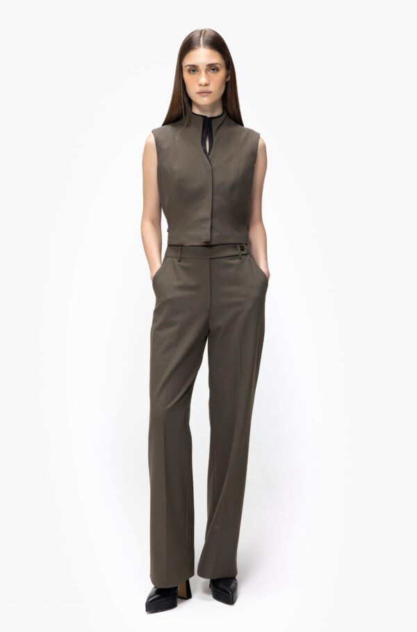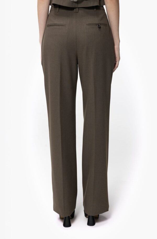 这款直筒西裤剪裁利落,线条流畅,尽显修长身形。加长的斜角腰带和中腰设计,更添时尚感。四个口袋——两个侧袋,两个后袋——巧妙地融入裤身,浑然一体。裤型挺括有型,同时勾勒出流畅的腿部线条。无论是搭配利落的衬衫还是剪裁利落的外套,都能轻松打造完美造型。